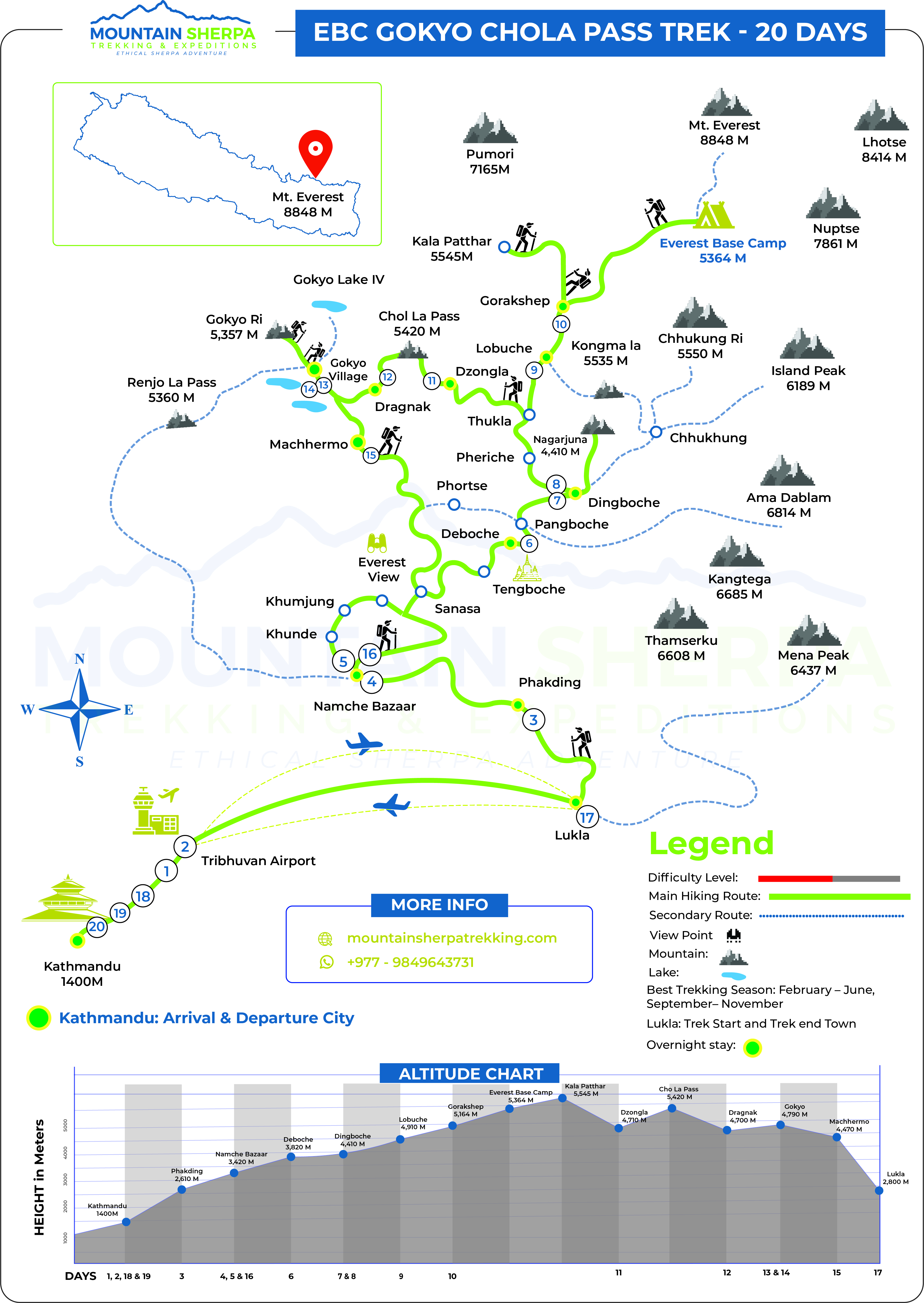 As a local Sherpa company with over 27+ years of experience, we take pride in organizing the Everest Base Camp Chola Pass Gokyo trek multiple times, achieving a remarkable 100% success rate. Our expert Sherpa guides possess extensive knowledge of the Everest region and are known for their flexibility, friendliness, and utmost responsibility.